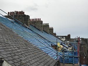 Some of the houses we have been working on are 6 stories high. This meant that before we started anything we had to erect scaffolding to make sure we could operate safely. We have worked on some interesting sites in our 28 years, but rarely do we get the chance to offer our team of engineers a sea view as they replace a roof.